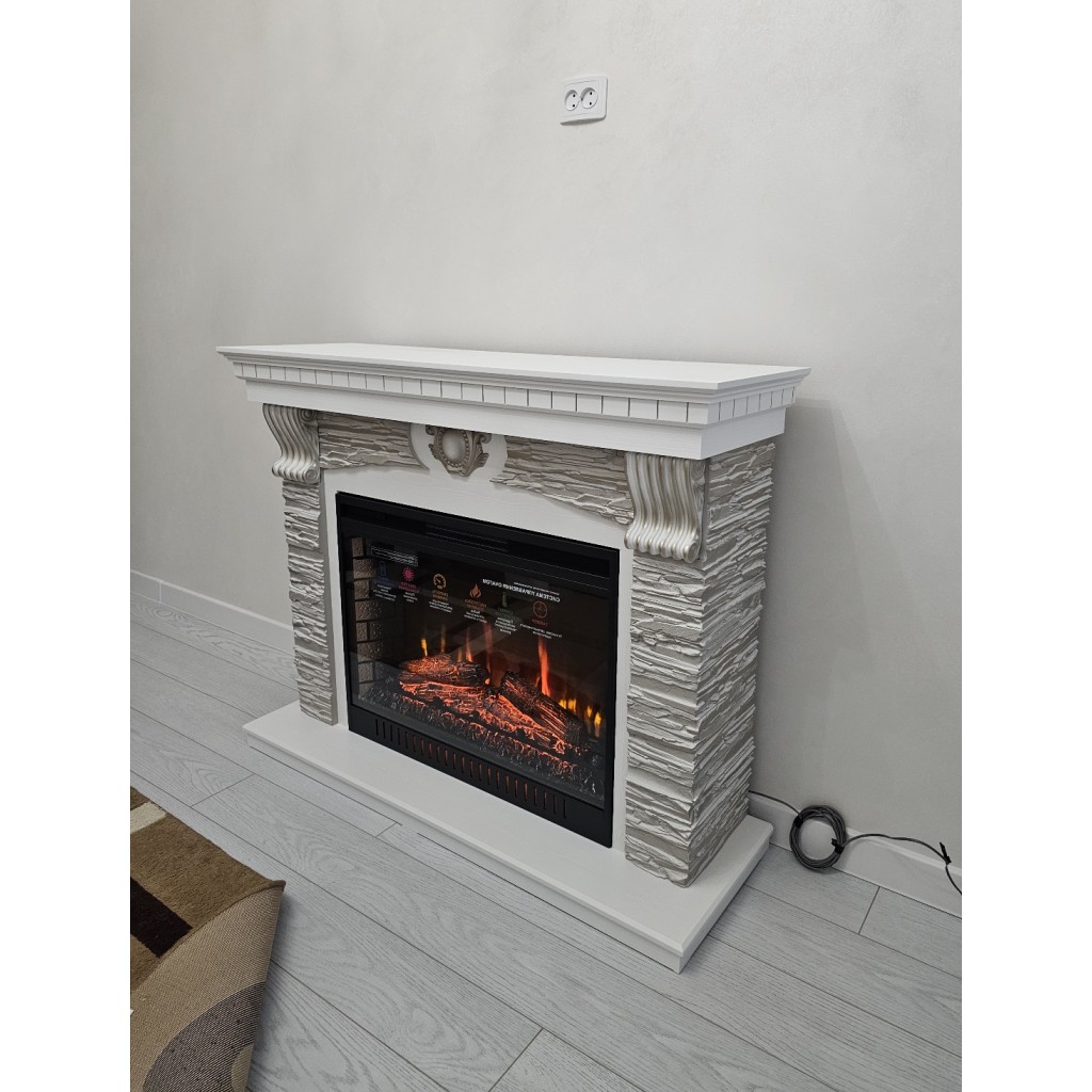 В отличии от настоящего камина данное устройство не распространяет неприятных запахов и дыма во время работы. Благодаря муляжу пламени и звуковой имитации потрескивания дров достигается реалистичность данного камина.