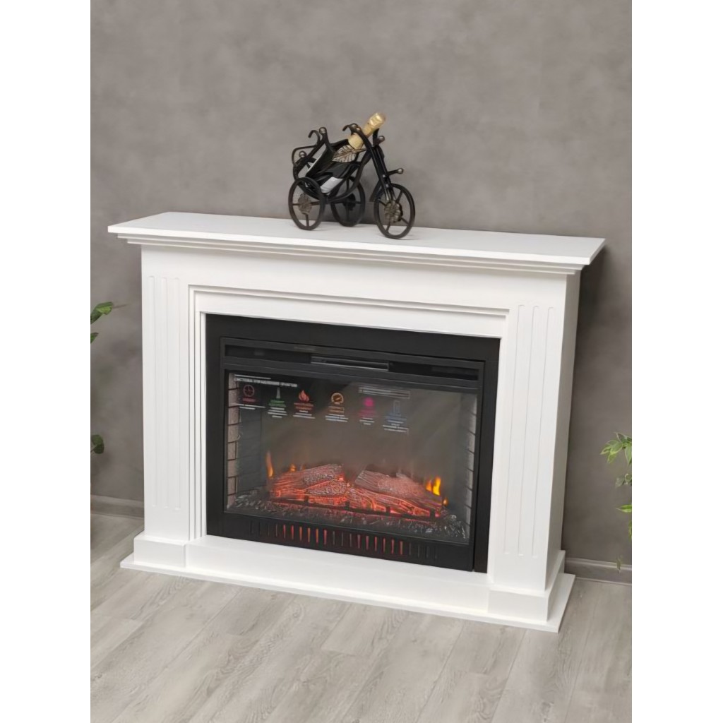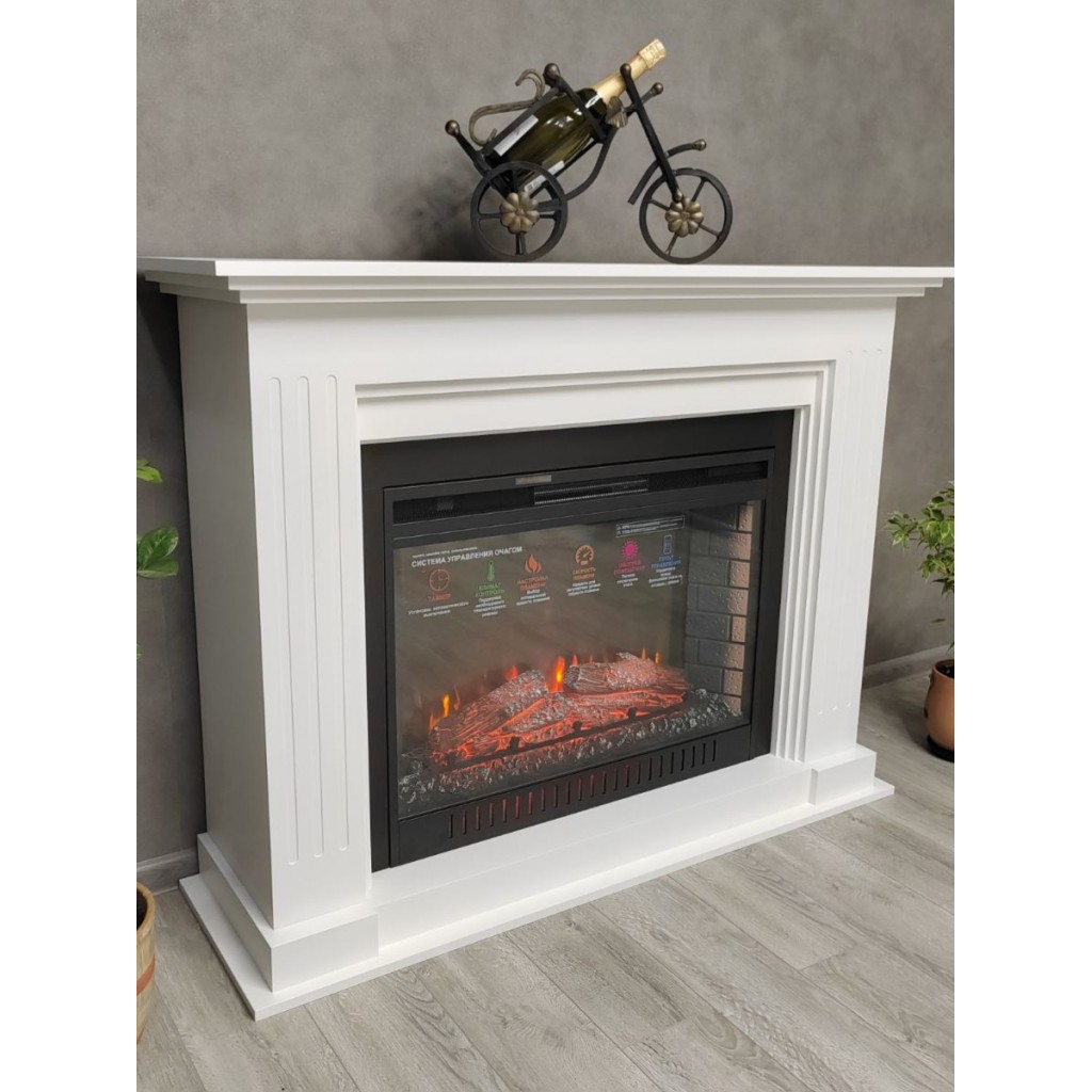 Современный стиль обрамления, многофункциональный очаг класса люкс. Обогрев - 1.8 кВт, красивое яркое пламя, гибкие настройки. Очаг обладает звуковым эффектом потрескивания дров. Дизайн же лишен всего лишнего и создан для любителей минимализма. Рекомендуем всем кто давно хотел электрокамин, но не решался.