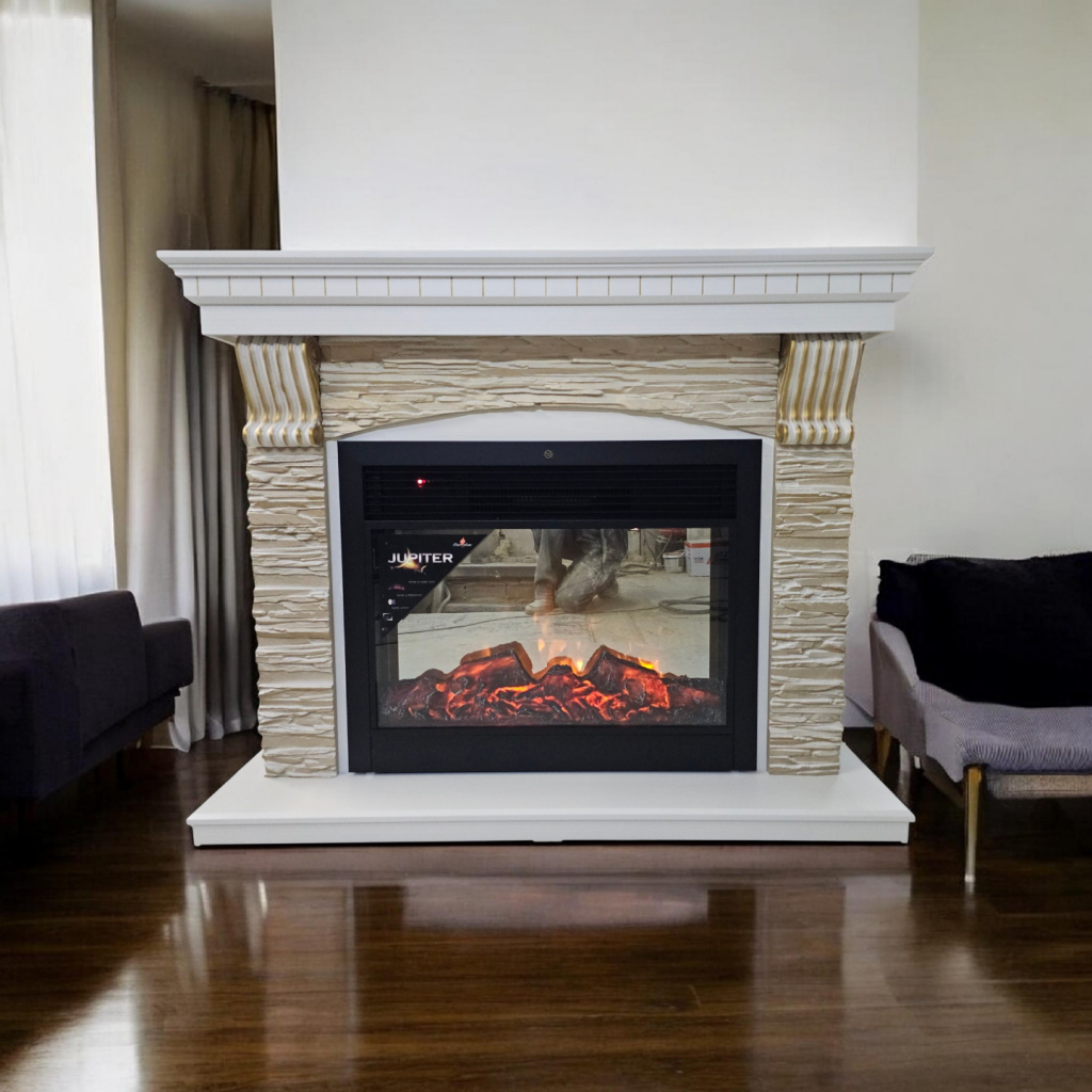 Каминокомплект "Верди Jupiter FX" , белый с золотом